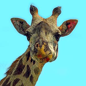 Photo of a giraffe, Kenya. Retouched and reworked in Photoshop